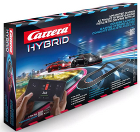 Carrera HYBRID - the perfect combination of gaming and racing fun, because the vehicles can race freely over the track at full throttle. AI support allows for a realistic driving experience in different driving modes. Experience true-to-the-original vehicles with front and rear lights, controlled via a free app. With automatic track detection, individual settings and authentic engine sound, Carrera HYBRID offers a unique racing experience. Additional vehicles are also available for even more racing action!