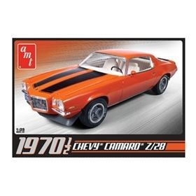 1:25 Scale 1970 1/2 Chevy Camaro Z/28 by AMT. Molded in a vibrant orange. This model is extensively detailed through and through. Stripe decals come in two colors. This kit contains over 100 parts. This classic car is a must have!