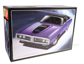 For the first time, this kit is being released as a HEMI R/T version. Some of the included options are an "air grabber" hood, a stage V HEMI engine, a "TorqueFlite" 3-speed automatic transmission, a dual exhaust system, a fully detailed chassis, and a detailed interior with separate door panels. The kit also contains a set of pad-printed Firestone wide oval tires with chrome wheels. With a NEW expanded decal sheet with authentic options. All wrapped up in the ALL-NEW vintage-style packing.