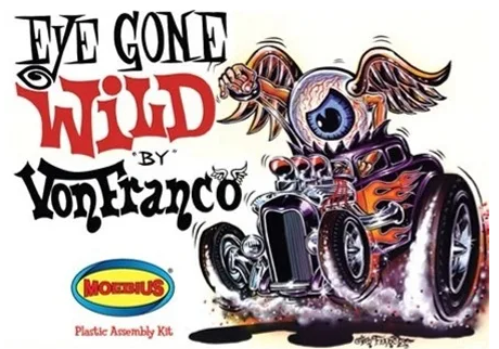 This is the Moebius Models Von Franco Eye Gone Wild 1/20 Scale Model Kit. Moebius Models offers a highly detailed styrene kit from the creative mind of Kulture artist Von Franco! Non scale injection kit is more than a handful! Vehicle itself is approximately 1/20th scale with winged flying eyeball driving.