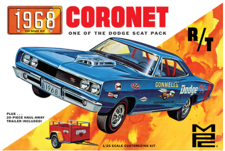 MPC 1968 Dodge Coronet Hardtop has been retooled from the ground Up. This is a muscle car modeler’s dream come true. All-new tooling means better assembly and more fun!
