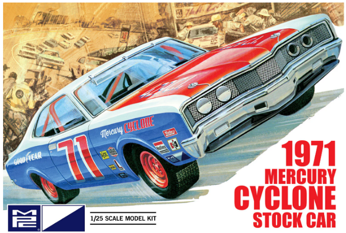 This detailed kit captures the bold styling and racing spirit of the legendary ’71 Cyclone, complete with authentic body lines, racing decals, and a fully detailed interior and chassis. Molded in high-quality plastic with chrome-plated parts and realistic pad-printed tires, it delivers a rewarding build.