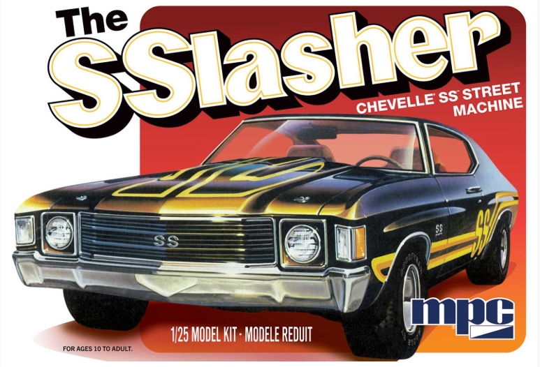 This kit comes with a ton of great features including bright chrome parts, pad-printed hollow vinyl tires, street aluminum wheels, traction bars, headers, an optional super stock hood scoop, and a detailed interior with roll cage. Also included is a detailed big block engine with a twin 4 BBL hi-rise setup and EXPANDED sheet of SS water-slide decals — all wrapped up nicely in MPC’s Retro Style packaging.
