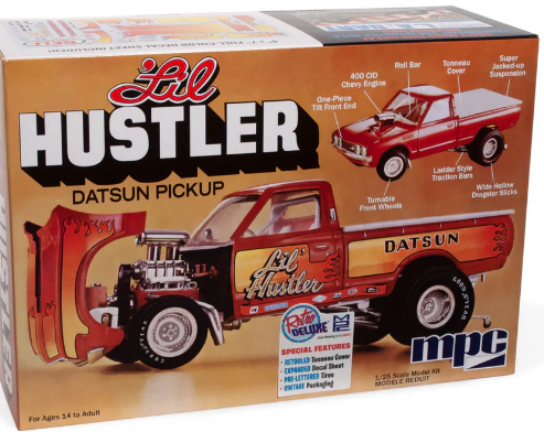 WILD MINI PICKUP DRAGSTER: Drag racing modelers get ready! MPC’s 1/25 scale 1975 Datsun “Li’l Hustler” pickup is a simple enough project for beginners but with enough detail to satisfy even the most seasoned model builder!