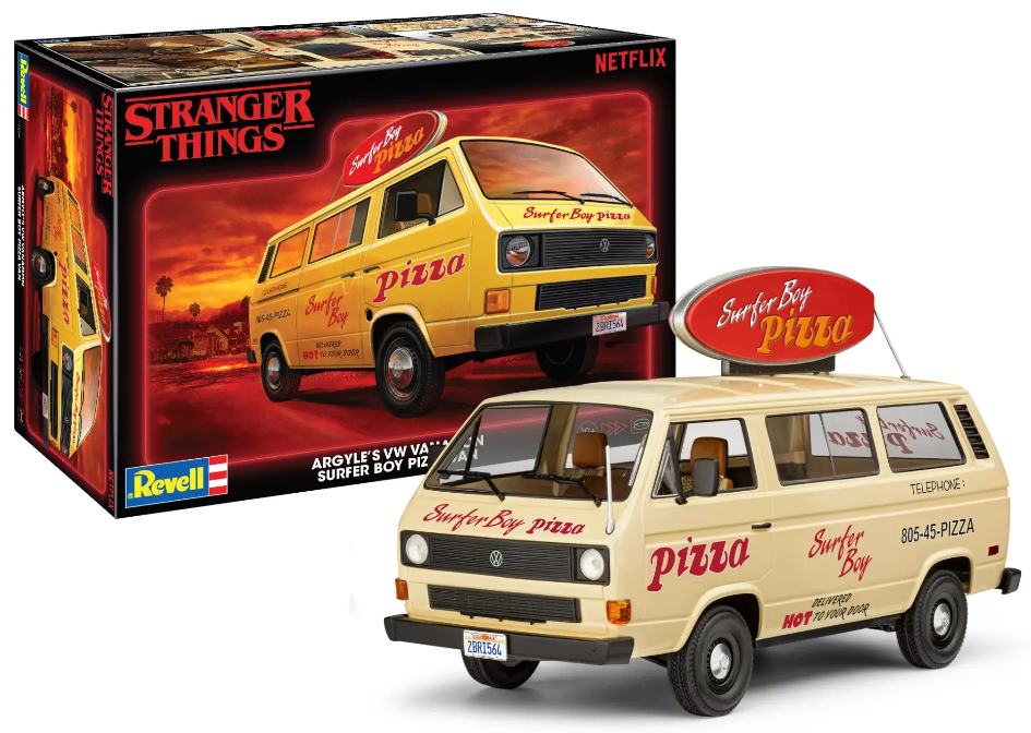 - Newly tooled parts as seen in Stranger Things include the unforgettable roof-mounted Surfer Boy Pizza sign, a crochet blanket, pizza delivery bag, lower front grille, and a set of bumpers.