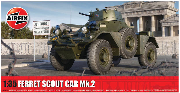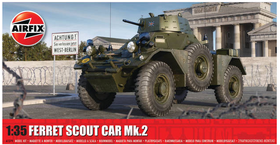 A quick and lightweight scouting vehicle used after WWII. With a 6-cylinder Rolls-Royce Engine, the ferret had a top speed of 45 mph as we advanced and reversed, making it very mobile. The finished model measures 105.7mm long and is a great medium-level kit.