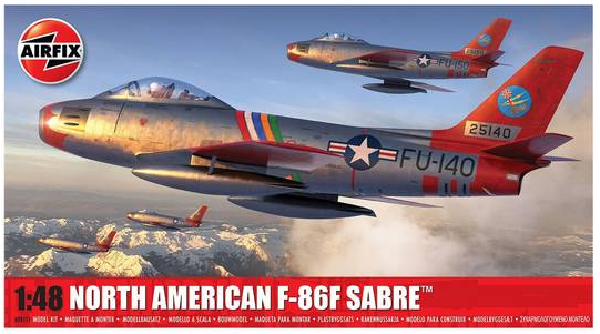 The Airfix A08111 North American F-86F Sabre is a 1:48 scale plastic model kit of one of the most iconic jet fighters of the Cold War era. The F-86 Sabre was a groundbreaking aircraft, being the first swept-wing fighter in US Air Force service and, upon its introduction in 1949, the fastest fighter in the world. It gained legendary status during the Korean War, where it famously engaged the Soviet-built MiG-15 in fierce dogfights, becoming a symbol of Western air superiority. This particular Airfix kit is a recent tooling, released in 2024. It offers a highly detailed and accurate representation of the F-86F variant, which featured an upgraded engine and later modifications to its wing for improved performance. The kit typically contains around 166 parts and is rated at Skill Level 2 or 3, making it a rewarding build for modellers of varying experience levels. It includes multiple decal options, often featuring historically significant aircraft from its service.