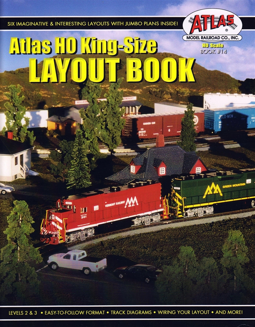 The Atlas HO King-Size Layout Book contains six layout plans which are large and relatively complex. Four out of the six plans fold out to become a 11 x 17", and each plan is in a 2" to the foot scale format. Includes complete building instructions, including detailed diagrams for a few cookie-cutter layout plans. Intermediate to advanced skill levels.