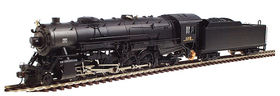 This DCC-ready steam locomotive features a glowing firebox, precision can motor, hidden drive train, metal motor bearings, balanced flywheel, metal piping and sanding lines, flush cab window glazing, lettered builders' plate, detailed cab interior, painted crew figures, all-metal valve gear, diecast driver spokes and counterweights, RP25 metal wheels, realistic load in tender and E-Z Mate(R) Mark II couplers. Each locomotive features separately applied details like domes, stack and cab. Each also feature diecast detail parts like stanchions, bell, whistle, handrails, grab irons and cut levers.