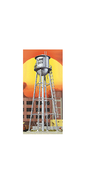 Ready to add to layout scenes, the assembled water tower comes in your choice of black or silver which are common prototype colors. Authentic details include a conical roof, caged ladder, and concrete base. A set of alphabet decals is included so you can personalize your water tower with town names, industries and more. The assembled City Water Tower is one of many Cornerstone HO Scale industry structures.