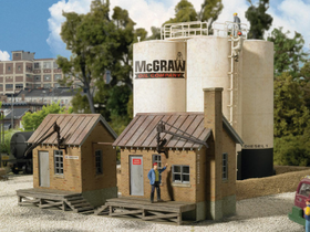 Businesses like McGraw Oil Company sold heating oil, diesel fuel and gasoline to consumers and dealers. Each had several storage tanks, a rack and piping for unloading tank cars and pumphouses for loading local delivery trucks. This Cornerstone Series kit is patterned after a typical trackside business and includes two different pumphouses with truck loading booms, four vertical tanks and a retention berm, tank car unloading rack and decals with a variety of business names. Dealerships like McGraw Oil Co. could be found in small towns and larger cities from the 1930s on, so this kit will look great on your steam- or diesel-era layout. See a selection of Cornerstone trackside businesses here.