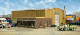The old sayings "everything old is new again" and "one man's trash is another's treasure" certainly applies to salvage businesses like the Walthers Cornerstone Washington Salvage Yard. Today, the range of man-made materials being recycled into new products is growing and includes all kinds of metals, rubber, plastics, paper and more. Combining office and a large work area into one structure, Washington Salvage is typical of the main buildings at many businesses, especially today's materials recycling facilities found in many communities. And, this combination of brick office and steel garage structure has been common since the 1960s, so your model could also serve as a county or city highway department garage, bus barn for a local mass transit authority, construction company offices, a railroad maintenance vehicle garage, truck or farm equipment dealership or any one of hundreds of similar businesses.