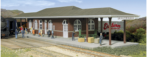 *Whitehall, Wisconsin, Prototype *Similar to Small Town Stations Across U.S. *Fits 1900s to Present *Authentic "Brick" Exterior *Covered Platforms on Two Sides *Attractive Curved Windows and Gabled Roof