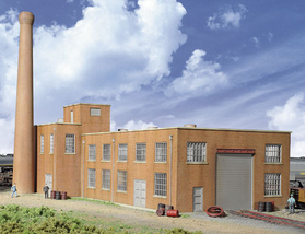 This kit matches the design of the Modern Roundhouse (933-2900, sold separately), and can be built as an attached or freestanding building. It also includes a boiler house, which would supply steam, electricity and compressed air to the entire facility. Large roll-up doors can be built open or closed, and the baseplate of the Machine Shop kit has slots that accept popular rail sizes. The Machine Shop is one of a wide variety of Cornerstone HO Scale railroad buildings.