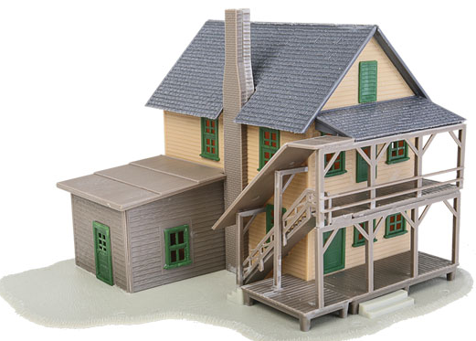 The WalthersTrainline Rooming House kit is a wood-frame house with a lean-to, front balcony and wood porch. Featuring a wood exterior and a shingle roof, this structure kit features plastic parts molded in appropriate colors so there's no painting needed. The Rooming House is quick and easy to build with complete, easy-to-follow illustrated instructions that are perfect for a first-time kit builder. This classic structure is a natural addition along your railroad.