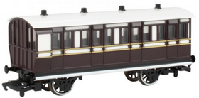 Toby's Museum Coaches are ready for Toby the Tram Engine (#58747) to transport visitors to the Sodor Museum! All rolling stock features realistic character faces (where applicable), highly detailed, realistic plastic body shells, all-metal wheels, and international-style hook-and-loop couplers.