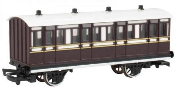Toby's Museum Coaches are ready for Toby the Tram Engine (#58747) to transport visitors to the Sodor Museum! All rolling stock features realistic character faces (where applicable), highly detailed, realistic plastic body shells, all-metal wheels, and international-style hook-and-loop couplers.