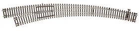 This Atlas Code 100 Customline Curved Turnout features nickel silver rail and black plastic ties that match other Atlas Code 100 trackage. This turnout can be set up as a remote or manual switch depending on which switch machine is added by the modeler. The turnout also features die-cast points and an isolated die-cast metal frog with a power contact. You can use this power contact option to energize the frog and prevent loss of power when a locomotive is passing through. The outside radius of the turnout is 30" and the inside radius is 22".