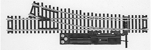 This Atlas HO Scale Code 83 Snap-Switch Turnout features Code 83 nickel-silver rail with brown molded-plastic ties and a plastic frog. The turnout comes equipped with an attached remote controlled, above-benchwork electric switch machine. The switch machine can be thrown with a Switch Control Box, 150-56 (sold separately). The 18" radius turnout also includes a 1/3 18" radius curve compensator track so for planning it equals one 18" curved section. The Snap-Switch turnout can also be thrown manually using the small sliding lever on the turnout. The track geometry of Code 83 track matches that of Code 100 Snap Track, so Code 83 track can be substituted for Code 100 in various Snap Track track plans.