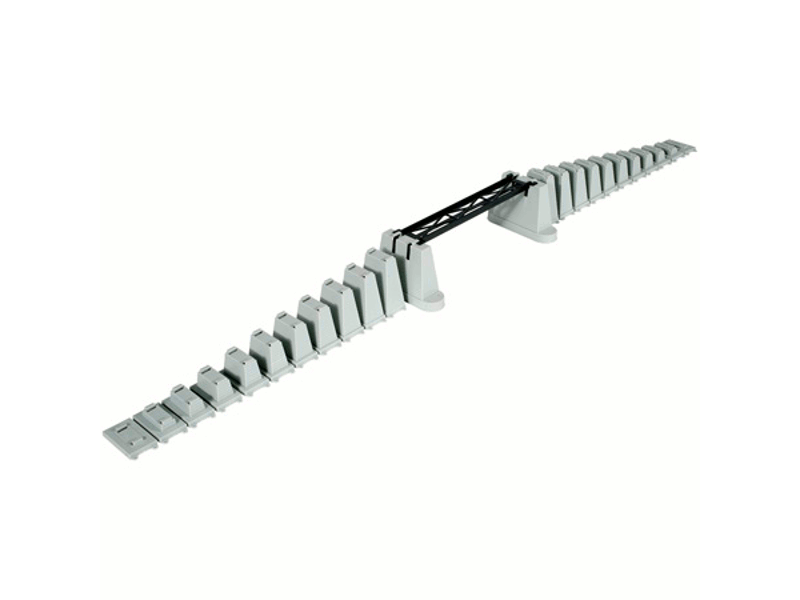 Elevate your HO Scale right-of-way in minutes with this set. Includes 46 graduated piers which snap in place under your track to lift the rails up and over. A pier girder and snap-in shims are also included.