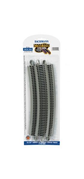 Nickel silver track with gray roadbed; 5/card Five pieces of track make up one-quarter (90 degrees) of a 66.5” diameter circle.