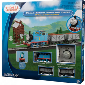Sir Topham Hatt has sent Thomas to the quarry to make a pickup with the Troublesome Trucks. Now freshly filled with a load of ore from the Quarry Tower, they are now ready to head off to their final destination. The Troublesome Trucks may be tricky to handle, but Thomas is confident they will get there on time. This deluxe set will help you relive stories from the Island of Sodor, or create your own railway adventures.
