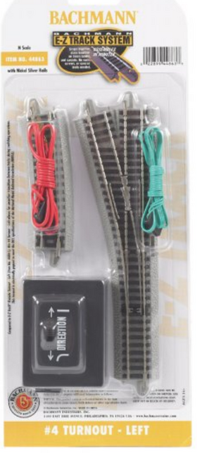 Compared to E-Z Track® Remote Turnout - Left (Item No. 44861), this #4 Turnout - Left allows for smoother transitions between tracks during switching operations. This turnout is electrically gapped to meet the DCC specifications of the National Model Railroad Association (NMRA).