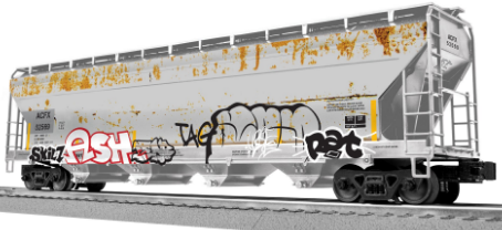 American Car and Foundry introduced the 5250 cubic foot version of its "Centerflow" covered hopper in November, 1964. These cars hauled everything from plastics to grain, starches and clays and were owned by railroads, private companies and car leasers alike. Some wore elaborate colorful paint schemes while others were simple gray affairs. Even those however often became more colorful as they became attractive canvases for taggers in the last two decades. With nearly 18,000 similar cars built from 1964 to 1982. These cars were a common site around the country from the 1960s to the 2010s. Several hundred are still in service today, often having served multiple owners. This release includes many colorful cars from multiple eras, including some modern tagged and weathered versions. Models feature round or trough-style roof hatches like the prototypes.