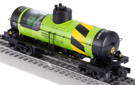 Our Area 51 rolling stock and accessories provide out of this world fun for scale or traditional layouts! These fun new scale rolling stock pieces include a hotbox "cryogenic transport unit", a glowing heavy duty flatcar carrying who-knows-what and another transport unit that the government has left surprisingly open for viewing! The tank car window reveals a large alien in protective fluid within. His partner isn't faring as well in our Area 51 Tank car accident accessory, complete with additional figures and a glowing spill. You can even add more life to your layout with additional new figures available separately.